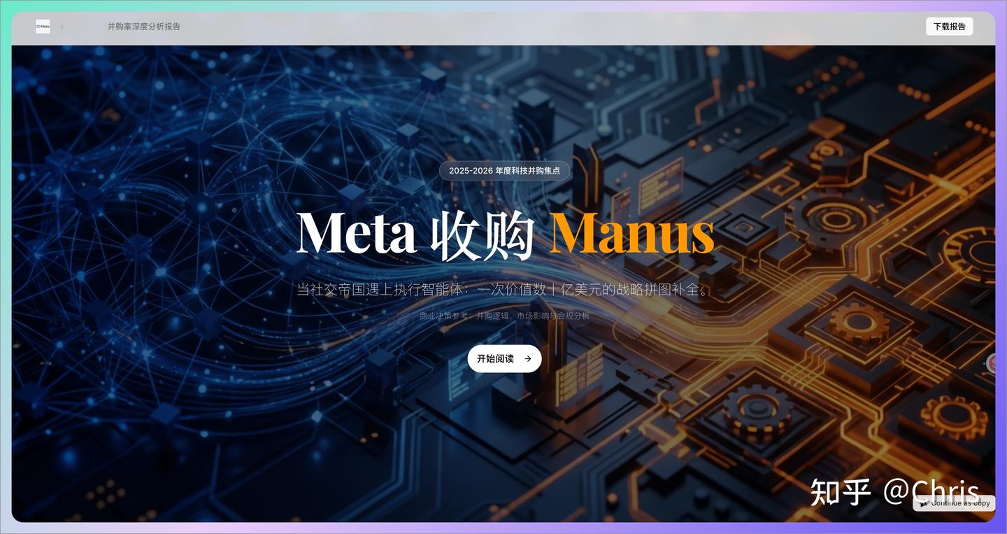 收集并分析互联网上关于 Meta 收购 Manus 的讨论,并整理成一份报告