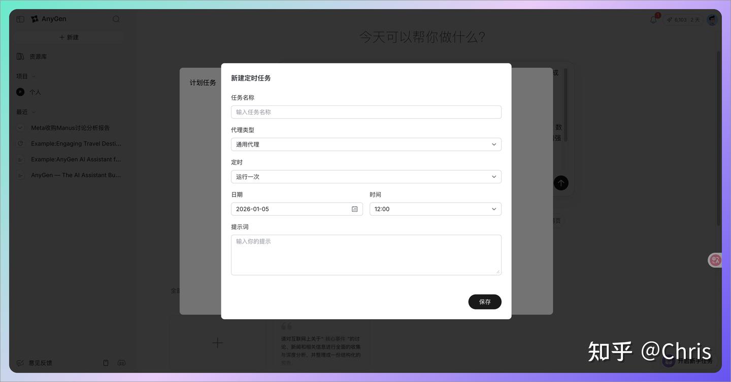 AnyGen 支持定时执行一些需要重复执行的任务,点击右上角头像,点击“计划任务”,然后创建你的定时任务,AnyGen 就会根据任务的运行日期、运行策略去执行这些任务。